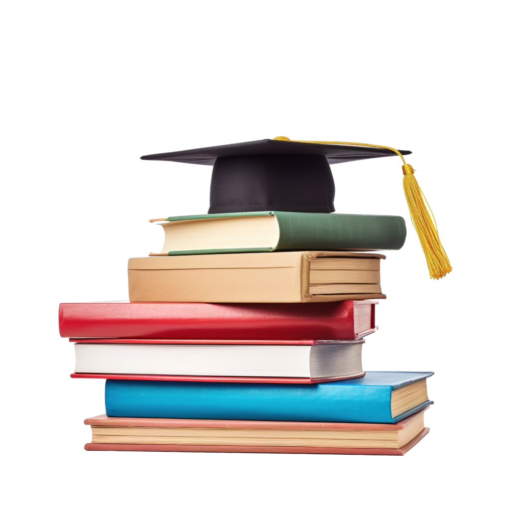 Educational and career-themed graphic with books and career growth symbols.